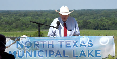Over three hundred people gathered on the reservoir’s future shore for the celebratory groundbreaking event. Representatives from the cities, counties, state, and water district gathered to hear remarks from U.S. Congressmen Sam Johnson and Pete Sessions, Fannin County Judge Creta “Spanky” Carter, incoming NTMWD Board President John Sweeden, and Executive Director Tom Kula. In addition to restating their gratitude for the partnership of so many, the District board also officially announced the reservoir’s new name (formerly called the Lower Bois d’Arc Creek Reservoir), one chosen in honor of its District cities and supporters who made the project possible.