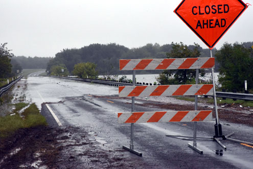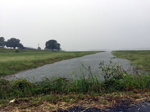 For the first time in memory, all three bridges on FM 273 over Lake Bonham were underwater and closed, but water levels are receding and, by late Sunday afternoon, all three bridges are expected to be reopened.