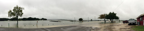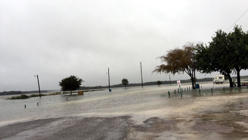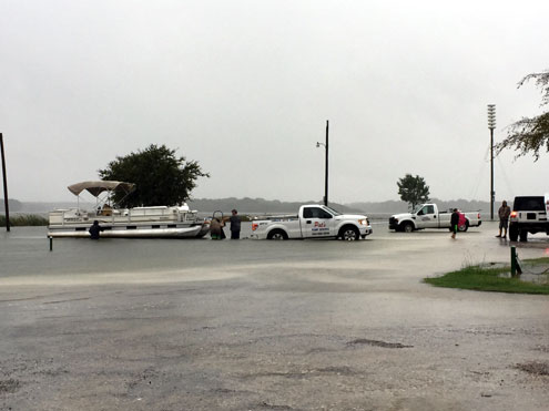 At Lake Bonham, the water level had risen 5.5 feet by mid-afternoon Saturday, sending water over the spillway and forcing some boat owners to relocate boats that were hitting the tops of boat houses. As of 10:00 p.m. Saturday, the water level at Lake Bonham was up seven feet in the last 24 hours.