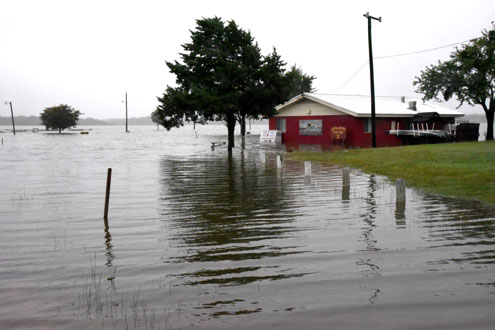 The Java Joint concession stand at Lake Bonham appears to be inundated with approximately 18 inches of water.