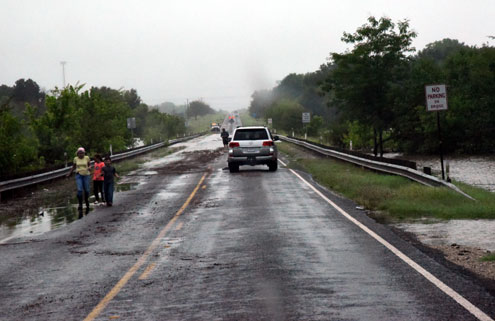 Avoid flooded areas. Fannin County Pct. 4 Commissioner Dean Lackey reported that CR 2605 is closed at the north end of Lake Bonham. DO NOT attempt to cross it as it’s already approximately two-feet deep and the water is still rising.