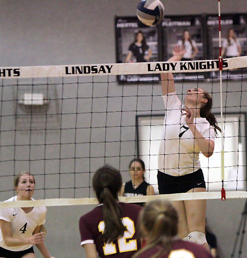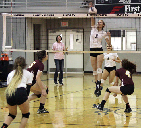 The Lindsay Lady Knights have an opportunity to complete another sweep of district competition Tuesday when Lindsay travels to Forestburg.