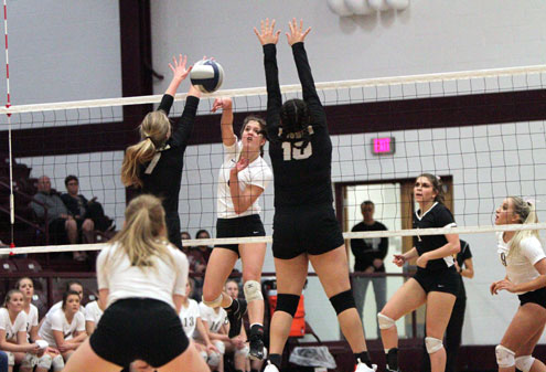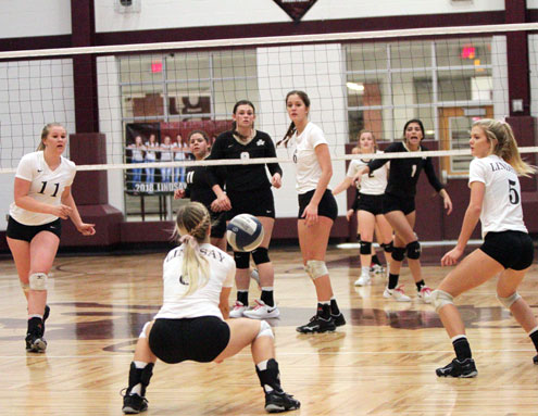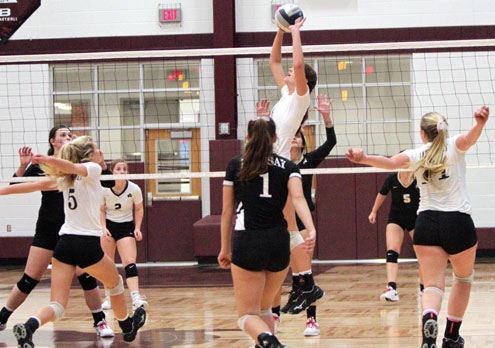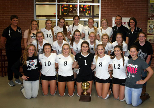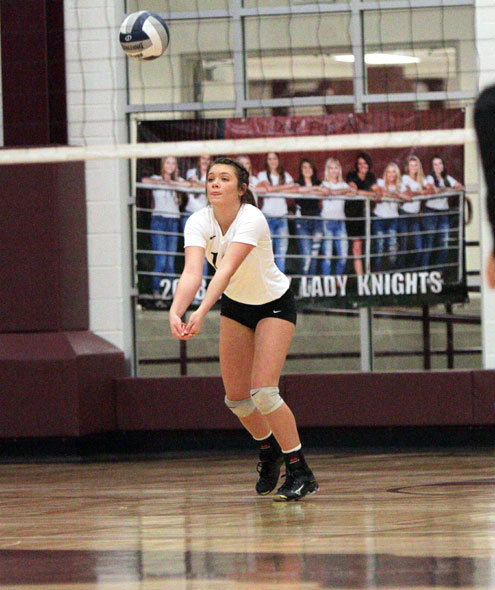 The Lady Knights had four players with double-digit kills, led by Ashley Fleitman's 18 kills, Rachel Metzler finished with 14 kills, Makenzie Fleitman put down a dozen kills and Brianna Craigie had 10 kills.