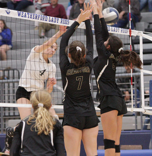 Weatherford, Texas -- The top-ranked Class 2A volleyball team in the TGCA poll is no more after the Lindsay Lady Knights stormed the castle at the regional tournament to vanquish No. 1-ranked Crawford.
