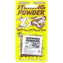 We did not so much itch as we burned, and stung, and smelled funny. We called an armistice and retired to the rest room to wash off the stuff. The water helped some, but the relief was only temporary. The powder was embedded in our shirts. When we put the shirts back on, the itch started in again.