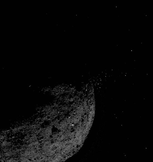 Shortly after the discovery of the particle plumes on Jan. 6, the mission science team increased the frequency of observations, and subsequently detected additional particle plumes during the following two months. Although many of the particles were ejected clear of Bennu, the team tracked some particles that orbited Bennu as satellites before returning to the asteroid’s surface.