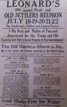 And there was so much more: an occasional fishing trip to Bois d’Arc; a junket to the city dump to search for treasures with a handy man named Otis who lived in a small cabin in the alley, or an occasional trip to the Leonard Theater for a movie. And there was the Leonard Picnic, and the Firemen’s Fish Fry and chasing fungos on the school yard and fishing for crawdads with bacon on a string in the creek at the edge of town and drawing on the sidewalk with the white chalk rocks that underlay the midnight black dirt that turned sticky when it rained and.... And so much more.