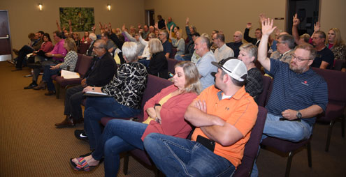 On April 24, facing a large crowd that was 100% in opposition to allowing the zoning change, Bois d'Arc Lake Zoning Commission heard a plethora of concerns, from how traffic safety at the county's busiest intersection would be impacted by another 150-175 trucks hauling 40,000-80,000 pound loads six days a week, to what impact an asphalt plant could have on the community of senior citizens down the street. The possibility of a significant increase in noise pollution was another concern expressed by several residents who live nearby.