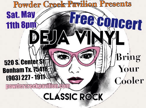 Bonham, Texas -- Deja Vinyl will take the stage May 11, 2019 at Powder Creek Pavilion for a free concert, beginning at 8:00 p.m.