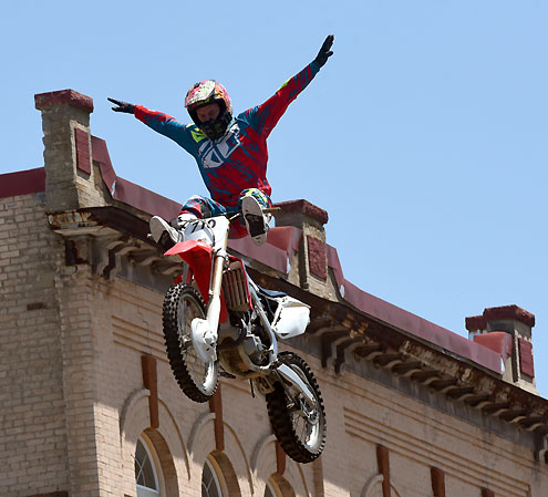 Daniel Weeks thrilled the crowd with a series of daring motocross jumps. Bonham Chrysler sponsors this event.
