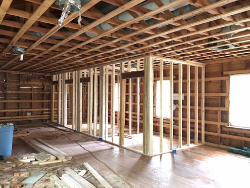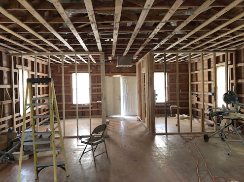 The building has been gutted and framed out. We are halfway through the process of plumbing and electrical wiring.