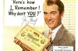 For the more discriminating candy lovers there were boxes of Russell Stover and Whitman Samplers, and the ever mysterious chocolate covered cherries. How did they get the cherry center in there?