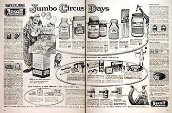 At one time or the other, the company sponsored Amos and Andy, The Phil Harris and Alice Faye Show, and Richard Diamond. In 1936, Rexall put together a special 12-car train pulled by New York Central streamlined Mohawk locomotive that traveled 29,000 miles in 47 states (no Nevada, go figure) highlighting their products. When the train stopped in a town, folks could get passes from their Rexall dealer and take the tour.