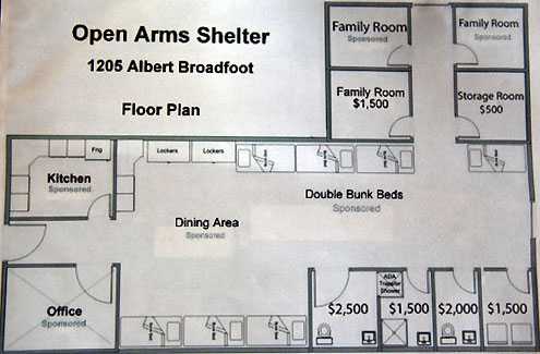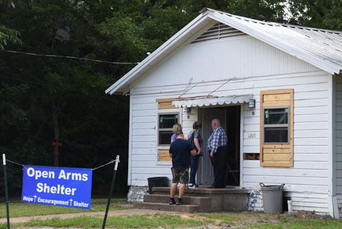 Bonham, Texas -- Open Arms Homeless Shelter opened its doors Sunday, June 30 for a construction open house. Plans call for the shelter, which can house up to 20 people including three families, to be ready for occupancy in the fall.