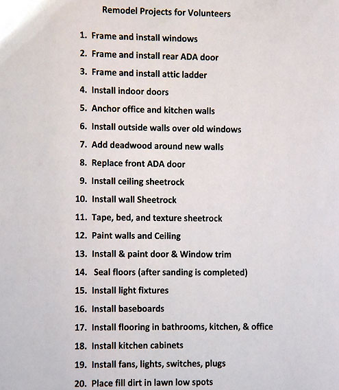 Open Arms Homeless Shelter's most critical needs at the moment are volunteer labor and cash donations that can be used to purchase building supplies.