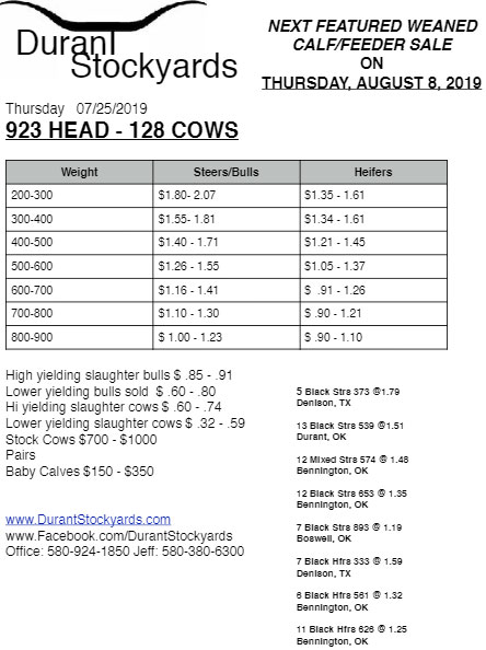 Durant Stockyards market report