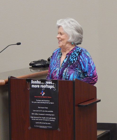 Agenda item two was the invocation, which was delivered by Cindy Baker Burnett from Main Street Presbyterian Church in Honey Grove.