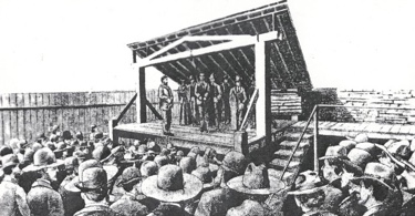 Eight of those fifteen were sentenced to hang on September 3. One of the original eight was killed in an escape attempt, and another had his sentence commuted because of his youth. The remaining six, three whites, two Indians, and one black, made the drop from gallows on the appointed day.