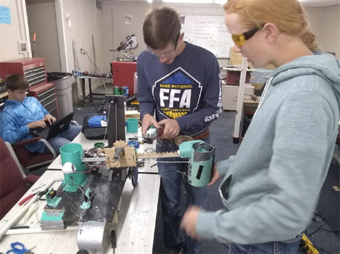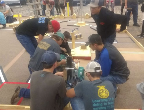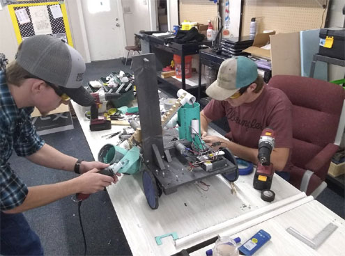 The competition is based on a points system, and it focuses on several judged or refereed components where: the teams present a marketing presentation to a panel of judges; the teams build and man exhibit booths that are judged to give the team a mock trade show experience; the teams design T-shirts, logos, and marketing material including websites and business cards that are graded (This year’s DCHS BEST 2019 student made website is: https://sites.google.com/a/doddcityisd.com/dc-robotics-best-off-the-grid/ ); the teams are judged on their school spirit presence at the tournament along with their sportsmanship conduct; and the teams compete in an actual Robotics Tournament that consists of 12 to 14 rounds of intense arena style robotics competition.