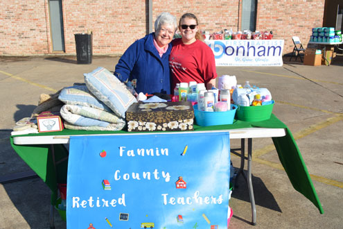 The Fannin County Retired Teachers Association provided handmade blankets, baby items and gift baskets to give out.
