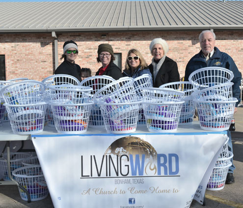 Living Word Church of God gave many baskets full of laundry supplies and paper goods.