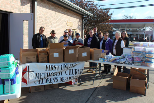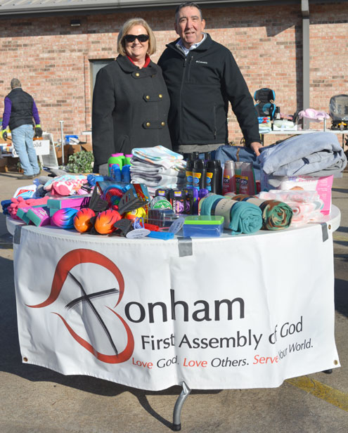 Bonham Assembly of God Church brought socks, toiletries and comfort items to share.