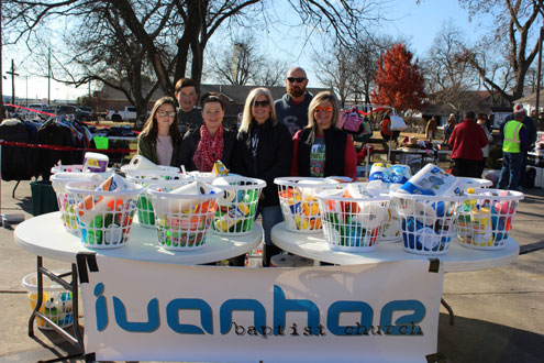 First Baptist Church is greatly appreciated for once again providing their parking lot for volunteers and shoppers to use. Sadie's Willing Workers Sunday School class at First Baptist Church gathered baskets of brand new kitchen items to give to shoppers.