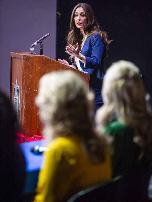 Durant, Okla. – Sarah Stitt, the First Lady of Oklahoma, speaks Tuesday afternoon to an audience gathered in Montgomery Auditorium on the campus of Southeastern Oklahoma State University.