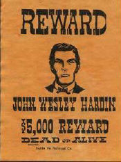 Back in Texas, the Legislature had posted paper on Hardin carrying the then unheard of sum of $4,000 for his apprehension and “the delivery of the body” to the Travis County jail in Austin. The condition of the body, dead or alive, was not addressed. But despite the tempting price on his head, Hardin was not to be found.