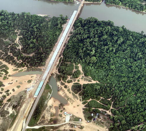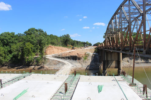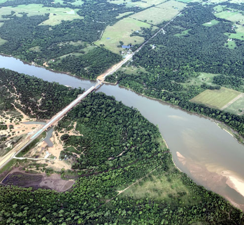 Fannin County, Texas -- Construction continues on the bridge that connects Fannin County, Texas to Bryan County, Oklahoma -- the Hwy. 78 bridge over Red River. Work on this project began in the summer of 2019 and Oklahoma Department of Transportation (ODOT) expects the project to be completed in early 2021.