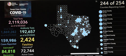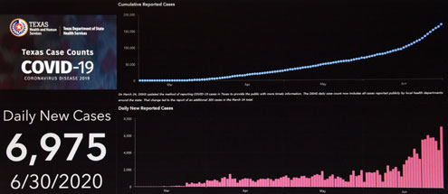 Austin, Texas -- Tuesday was another record-setting day for COVID-19 cases in Texas with 6,975 new cases -- almost 1,000 more newly confirmed cases than the second highest day (5,996) on June 25.