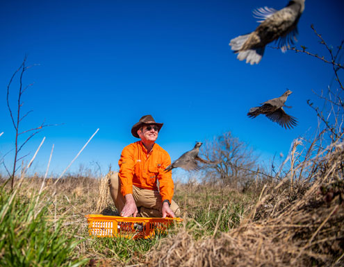 The translocation project was undertaken to determine the feasibility of creating a sustainable quail population in Texas, and it is the state’s first effort to do so with Valley Quail. Reyna says that Valley Quail were chosen because they possess several advantages over the native Bobwhite: They roost in trees instead of on the ground; they rely less on insects in their diet; and they have shown themselves to be more adaptable to human encroachment than their Texas cousins.