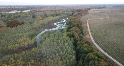 Bois d’Arc Lake will provide an invaluable water source for millions of North Texans as well as recreational and environmental benefits (stimulating Fannin County’s economy by $166 million every year after its completion). The lake will also cover twenty-six square miles of local natural habitat. To help offset, or mitigate, the loss of habitat, NTMWD purchased thousands of acres including the Riverby Ranch, an approximately 15,000-acre ranch located north of the new reservoir site. Willow Branch Creek travels through the ranch. RES, a national expert in environmental restoration, was hired to return these acres to a restored, natural pre-agricultural condition.
