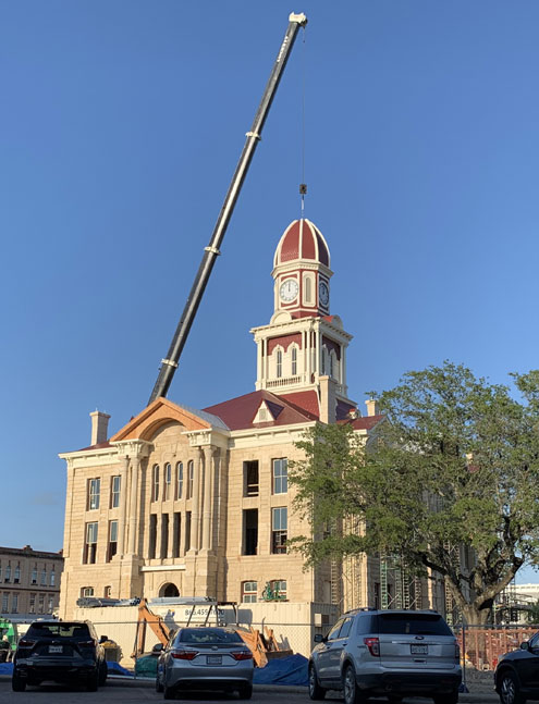 But that celebration hardly compared to the excitement in downtown Bonham August 20 as the towering cupola was assembled atop the courthouse that is only a few months away from being completely restored. Sirens wailed, horns honked, there were high-fives and tears in many eyes.
