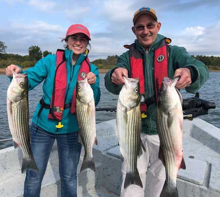 Texoma: October 10. Elevation below normal, water 77. For current elevation conditions go to the U.S. Army Corps of Engineers website at https://www.swt-wc.usace.army.mil/DENI.lakepage.html. Fishing this week has been good. Striped bass good on Alabama rigs, flukes, live shad, sassy shad and topwater lures below the dam, main lake and points. Striper are biting live shad very well right now. They are catching them near the islands and Platter Flats area.