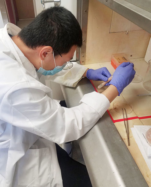 Tianyi Dou, a graduate student in Kurouski’s lab, has been conducting the spectroscopy experiments.