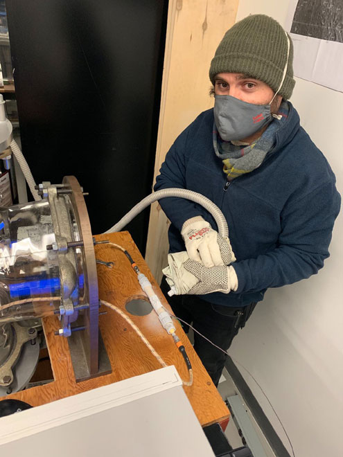 “The lab was cold,” Smith said. “It was winter in Canada at the time, and pumping liquid nitrogen into the room made it colder. I was bundled up in a hat, jacket, gloves, scarf, and a mask because of COVID-19. It was pretty uncomfortable.”