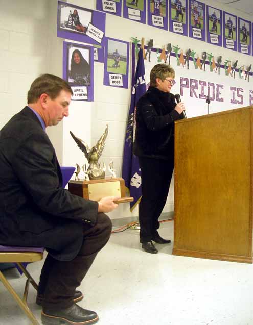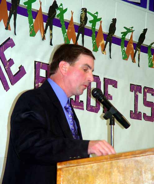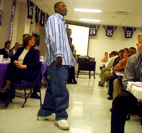 Bonham AD Ronnie Hill told about the coaching staff's decision on how to honor Justin Owen, the Purple Warrior that lost his battle with Leukemia on December 4, 2004. A scholarship will be set up in honor of Justin and donations are now being accepted.