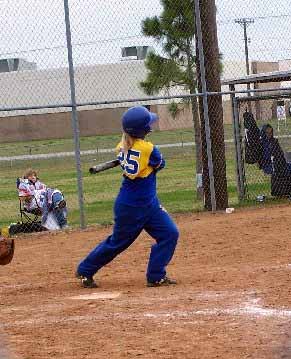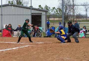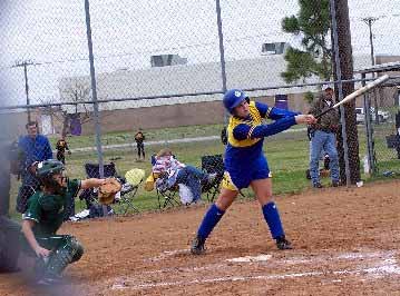 Bland batter Mindy McKee takes a cut.