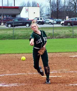 Bland pitcher Aubrey Coffey fires one in.