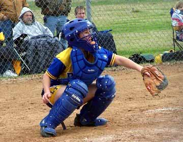 Bland catcher Jessica Penney sets up behind the plate.