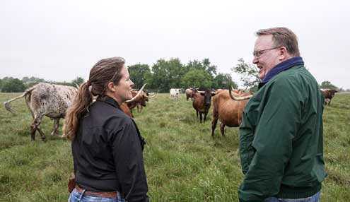 These days, she works closely with the NRCS on everything from maintaining native, healthy grasses to rotating her cattle and keeping pastures healthy. Cattle rotation allows for better groundcover growth and improves the land for wildlife. Payne wants to see wildlife on her land, not just cattle, so she works closely with the NRCS to make sure her operation also is tailored to the health of local animals. This includes keeping her cattle out of certain pastures during part of the year so burrowing owls can safely nest without the threat of being trampled by her Longhorns.