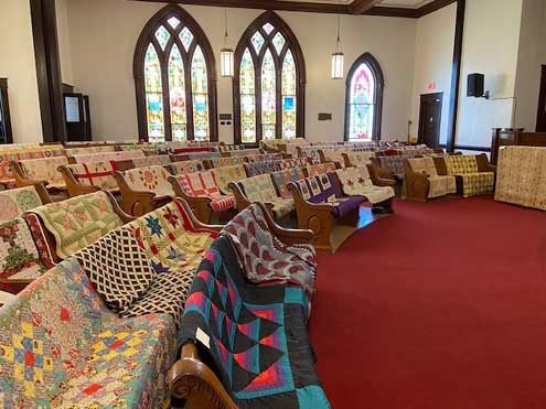 The sanctuary will be beautiful with many colorful quilts displayed on the pews.