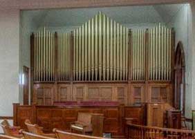 It has many beautiful stained glass windows and a marvelous restored organ.