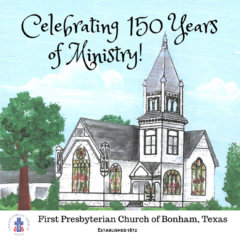 Bonham, Texas -- First Presbyterian Church Bonham will be celebrating 150 years of ministry at 10:00 a.m. on Sunday, August 21. We hope you will make plans to join us for an extra special time of worship and fellowship to celebrate this significant milestone in our church's history.