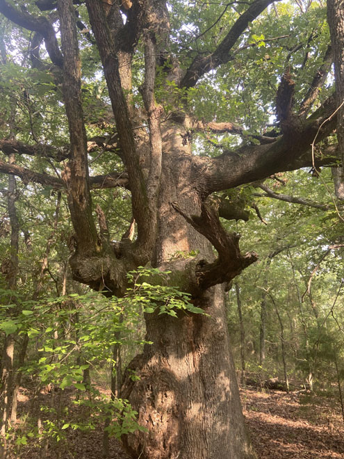 We came upon an ancient oak that appeared to be nearing the end of its long, long life. Some of the major limbs had died and the old oak, although still alive, had the appearance of a tree that had been around at least a couple centuries and witnessed much.