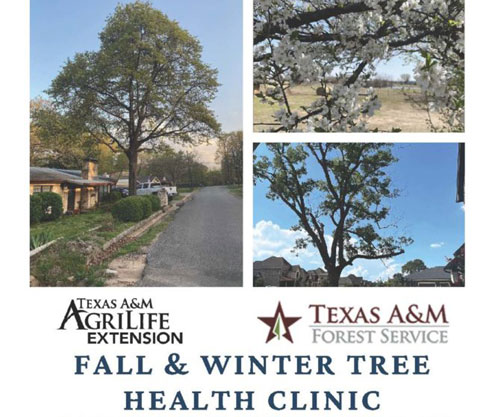 Texas A&M AgriLife Extension and Texas A&M Forest Service will be hosting a Fall and Winter Tree Health Clinic in Sherman, TX (September 23, 2022; from 1:00 p.m. to 4:00 p.m.).