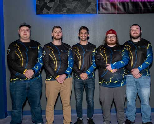 Team members are Peyton Bearden, Braden Couch, Nicholas Ratgen, Zane Ritterhouse, Kelton Shriver, and Spencer Teel, while SE Assistant Director of Admissions Steven Harris serves as coach, and IT systems administrator Jason Stowell is coordinator.