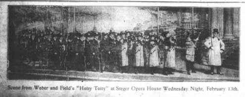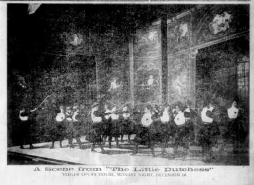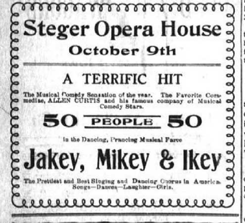 Ed Steger and his brother Virge brought road shows to the Opera House. The first play to be presented was A School for Scandal.