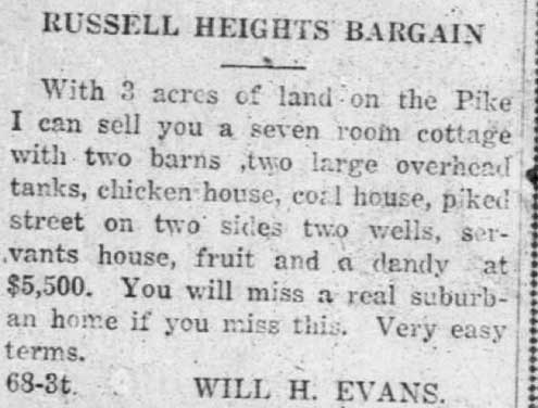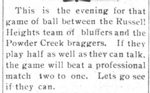 According to an article by Dr. William F. King, the lives of the people of Russell Heights were filled with sports events, dances, operas, parties and other social activities. Some “house parties” lasted several days. Russell Heights had its own opera house and a skating rink, which was also used as a dance hall.